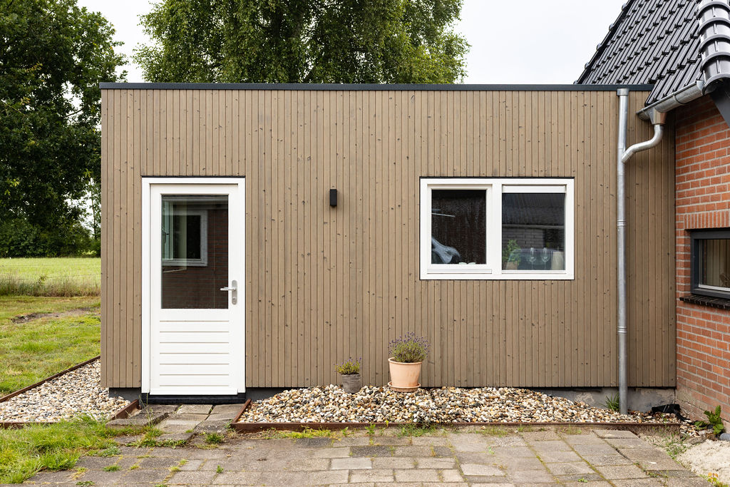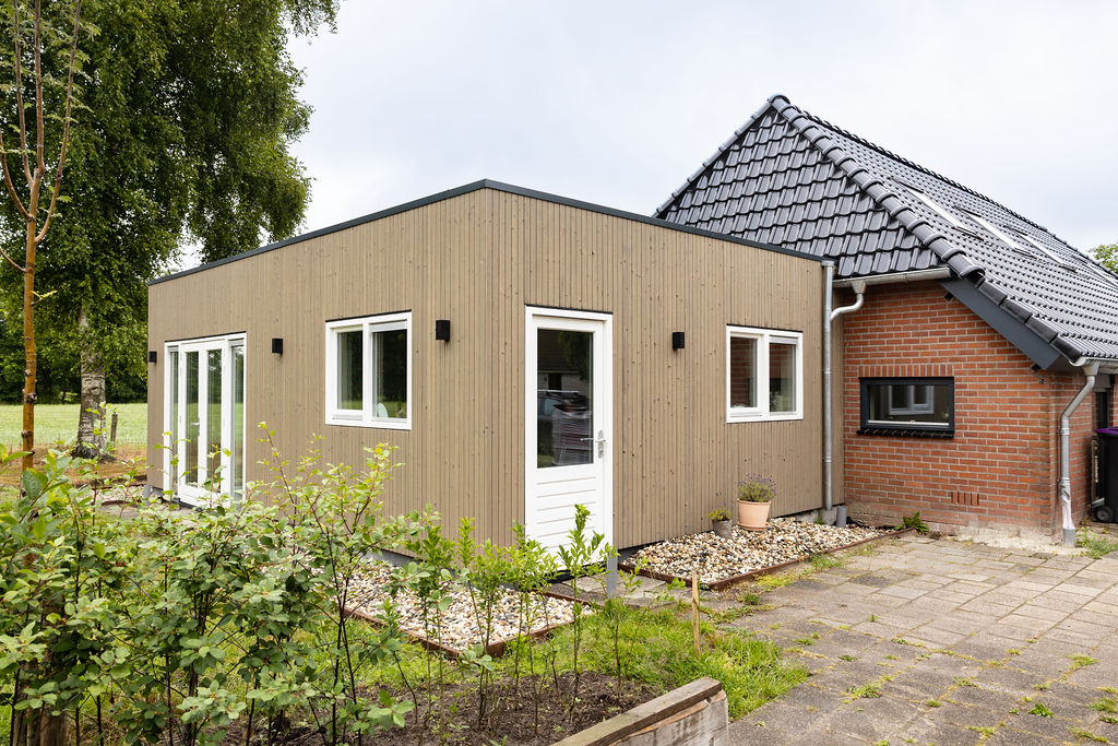 Dankzij een snel bouwproces is de aanbouw binnen zes weken gerealiseerd, klaar om te functioneren als kantoor aan huis.